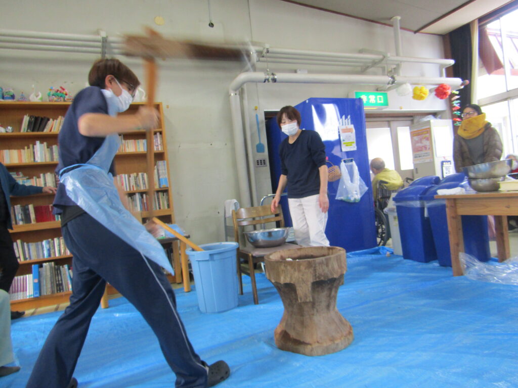 もちつき雫石エリア 養護老人ホーム松寿荘です。 12月29日、もちつきが行われました。29日は2(ふ)9(く)の語呂合わせから縁起が良い日とされることもあり、この日に決定しました! もちつきが得意な男性ご利用者に監督をしていただき、職員がきねを降ろす度に「よいしょー!」とご利用者の威勢の良い声が飛び交います。鏡餅を作るのは女性ご利用者。慣れた手つきで形を整え、あっという間にいくつもの鏡餅が出来上がりました。12月31日にはおしるこを食べ、年末の風物詩を終えて2025年も無事に幕を閉じました。 職員も気合が入ります!! ![]() 「よいしょー!」「ほれ!がんばれ~」 ![]() 「鏡餅ならまかせて!」 ![]() |