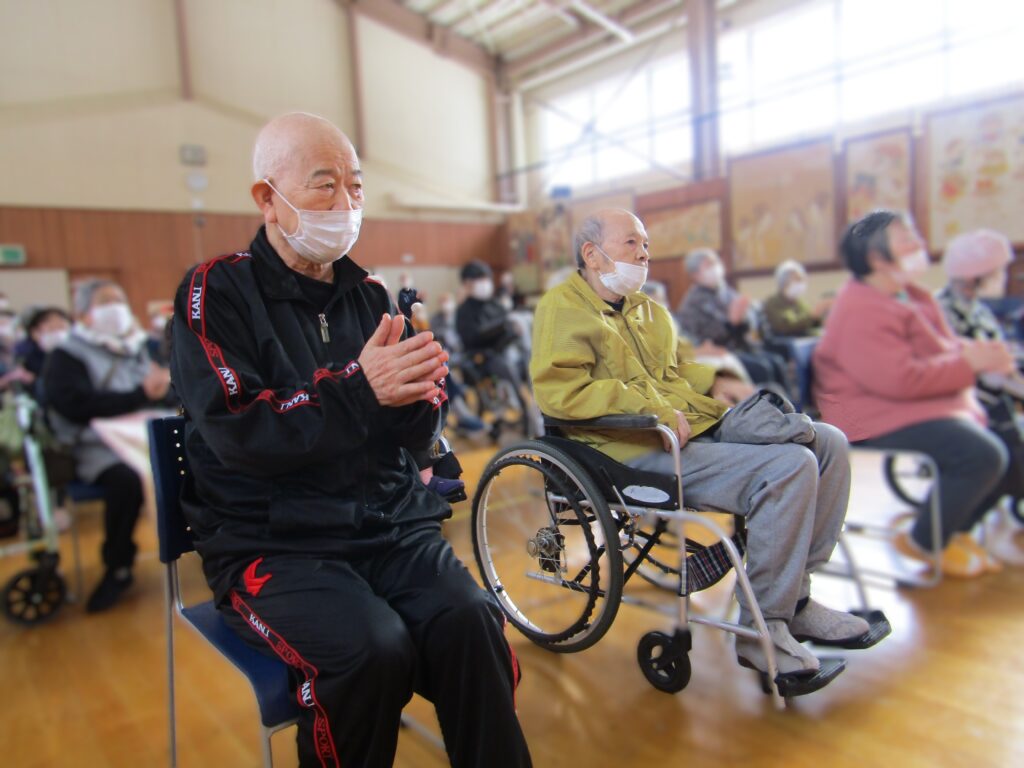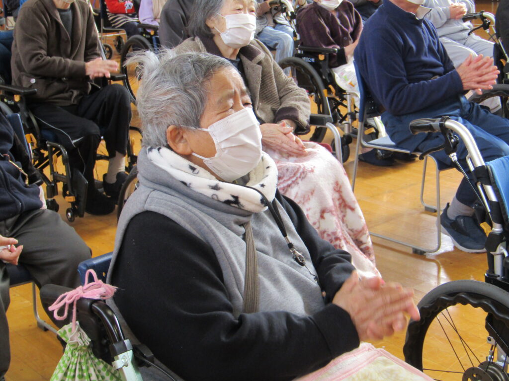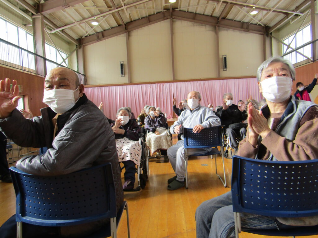 保育所交流会雫石エリア 養護老人ホーム松寿荘です。 1月23日、七ツ森保育所の園児さんとの交流会が行われました。 到着するや否や目が離させない様子のご利用者。歩いている姿を見て「かわいいな~」、挨拶をする姿を見て「えらいな~」、演奏する姿を見て「じょうずだな~」と、目じりが下がります。感極まって涙を流すご利用者もいました。園児さんが帰る時もお別れが名残惜しく、見えなくなるまでずーっと手を振ってました。 「わたしにもこんな時期があったわね~」 ![]() 「ほれ、がんばれ~」 ![]() 「めんこがったな~、また来てね」 ![]() |