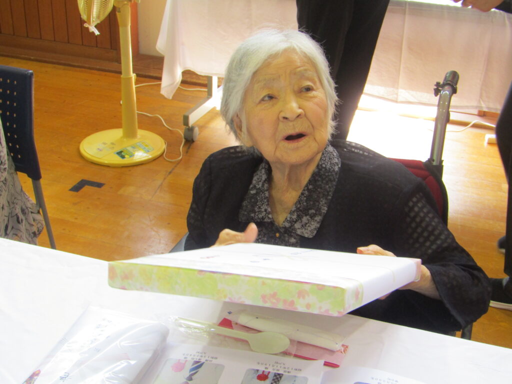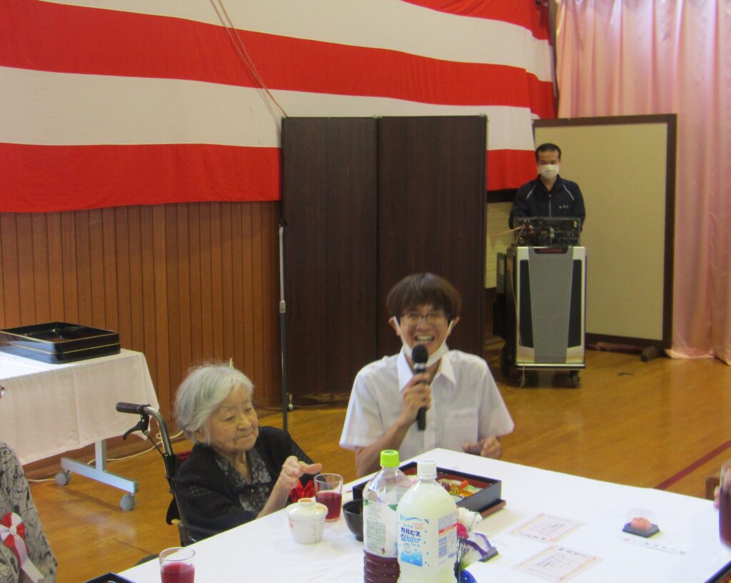 一覧江刺寿生会法人ヒロノエリア伊手エリア反町エリア雫石エリアヒロノ障がいエリア 2026年01月23日雫石エリア 松寿荘 敬老会 雫石エリア 養護老人ホーム松寿荘です。 9月12日に敬老会が行われました。今年度の賀寿者は最高齢(白寿)99歳1名、卒寿1名、米寿4名、傘寿2名、喜寿5名、合計13名でした。記念品の贈呈、お祝い膳、毎年恒例となった職員のさんさ踊りと、終始お祝いムードに包まれた温かい時間となりました。ご利用者職員ともに笑顔が見られ、お祝いができる喜びを感じた1日でした⚘ 最高齢99歳のご利用者です 記念品贈呈 嬉しさがこみ上げます 会食の一コマ 職員との会話も弾みます < 前の記事へ 次の記事へ >